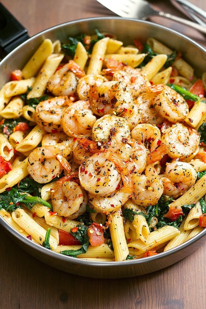 Паста «Спагетти» с грибами и шпинатомПотрясающая паста «Спагетти» с грибами и шпинатом отлично подходит, когда хочется вкусного и сытного ужина. Просто слегка обжарьте грибы, добавьте специи, шпинат и отваренные спагетти, еще несколько минут и блюдо готово! Быстрый ужин на сковороде, который захочется готовить вновь и вновь. А если вы любите легкую остринку, тогда посыпьте готовую пасту колечками перца чили.