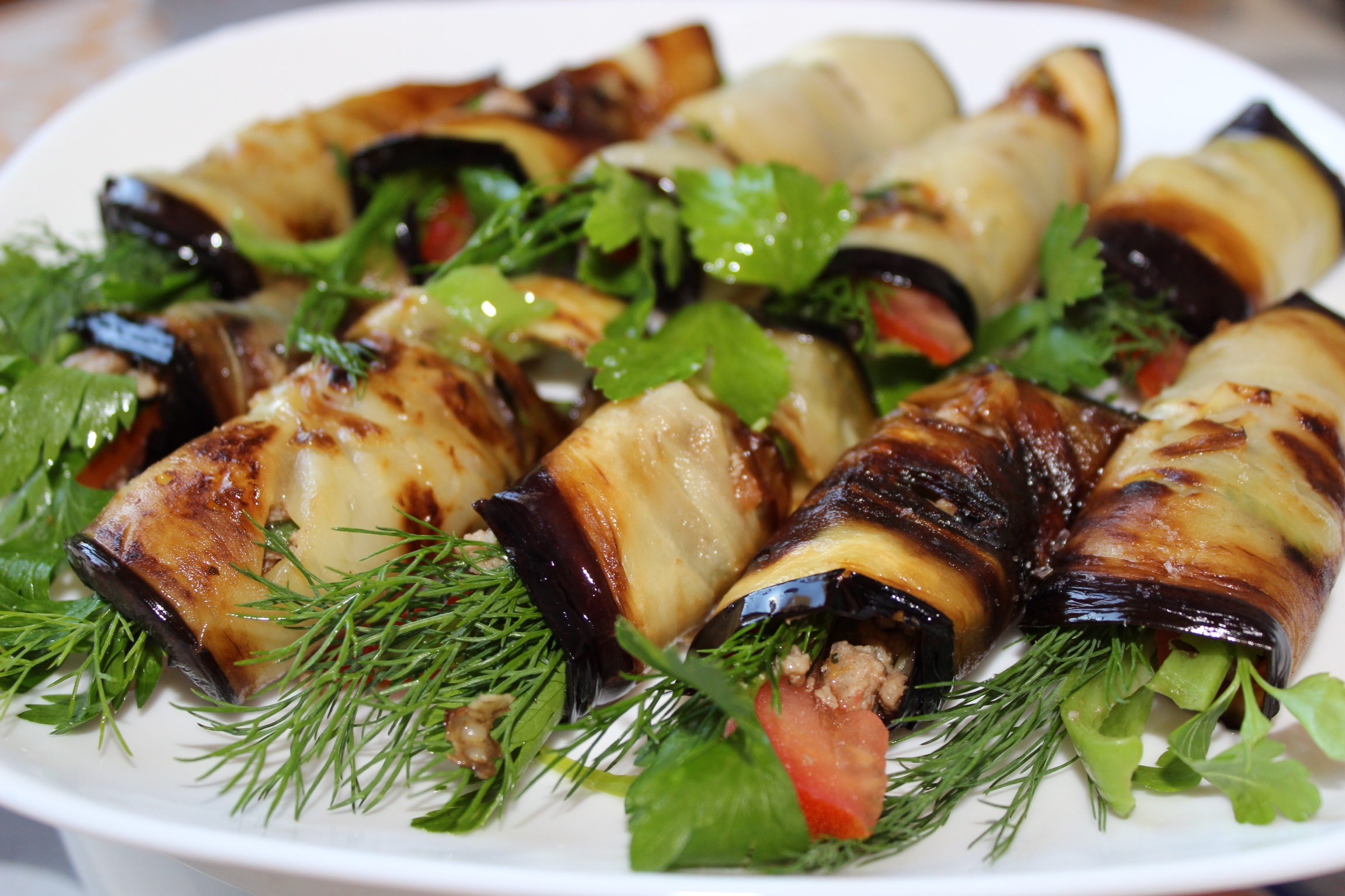 Получите рецепт: Роллы из баклажанов и нута на гриле