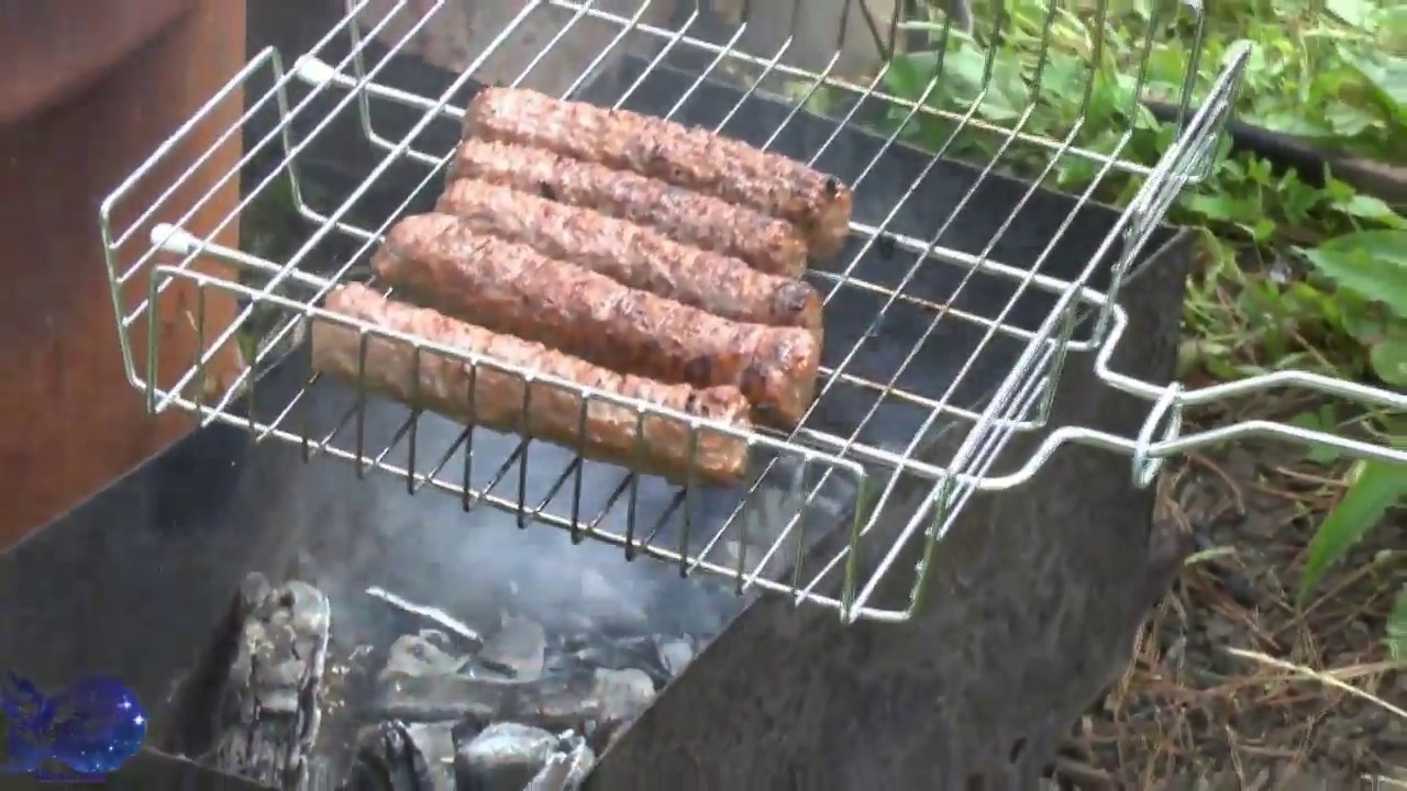 Как жарить чевапчичи на гриле? Жарят мясо на углях, используя специальные решетки под гриль. Уголь лучше брать готовый, кусковой или в брикетах, чтоб не давал пламени. Решетка должна быть смазана маслом. Жарят колбаски, периодически переворачивая.