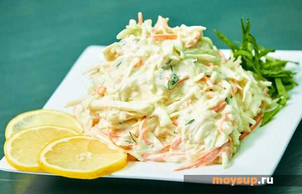 Или просто крабовый салат. В лихие 90-е этот сегодня уже «традиционный» салат вначале украшал стол «новых русских». Японская нанотехнология — крабовые палочки — тогда только появлялась на наших прилавках и были сродни мега деликатесу. Теперь же ситуация изменилась: нам стало известно, крабовые палочки вовсе не «крабовые», а из белой рыбы типа минтая. Сам же рецепт стал доступен, как никогда. Ведь красные палочки сурими, кукурузу и яйца можно отыскать на любом рынке. Собственно, метод «крабового» до неприличия прост: палочки нарезать (кто как: мелко или крупно), яйца отварить и натереть на терке, а далее — приправить крабов и яйца кукурузой, предварительно слив сок. Перед подачей — сдобрить майонезом, посолить, если требуется, и вот, вы снова в 90-х! Но мы хотим предложить вам на заметку и наши вариации. А вдруг придутся кстати.