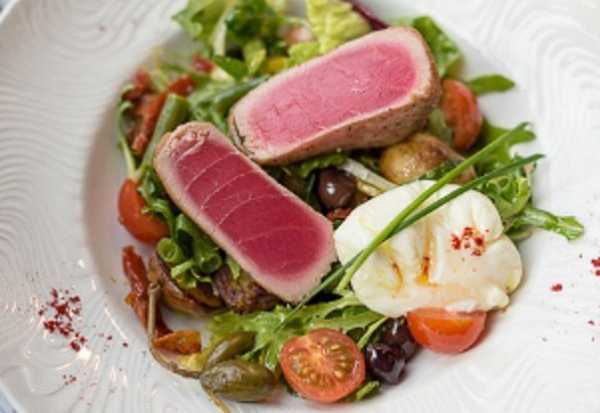 Знаменитый салат из Ниццы, фирменное блюдо отеля «Негреско», некогда бывшего оплотом отдыхавшей на Лазурном берегу русской аристократии. По легенде, к изобретению салата приложил руку сам великий хореограф Джордж Баланчин. Но мы любим нисуаз не за это, а за филигранно выверенное сочетание пряных маслин, пикантных анчоусов и остро пахнущей морем мякоти тунца.