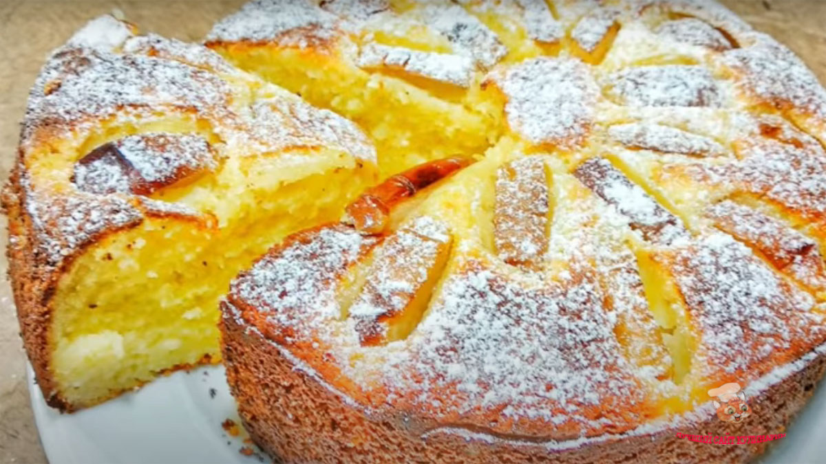 Шарлотка королевская, яблочная с творогом
