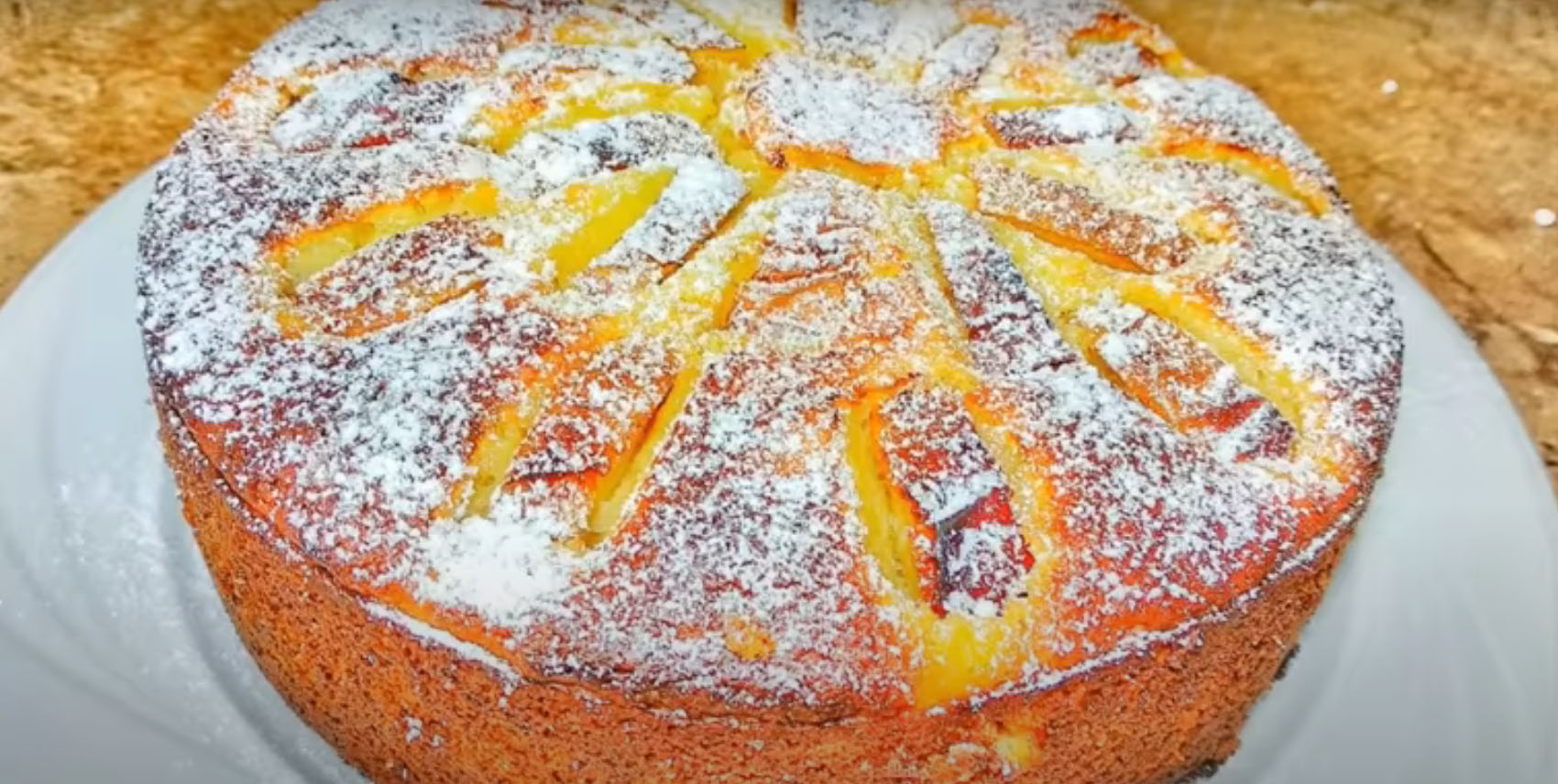 - шарлотка из простого, обычного бисквитного теста, которым заливают яблоки;